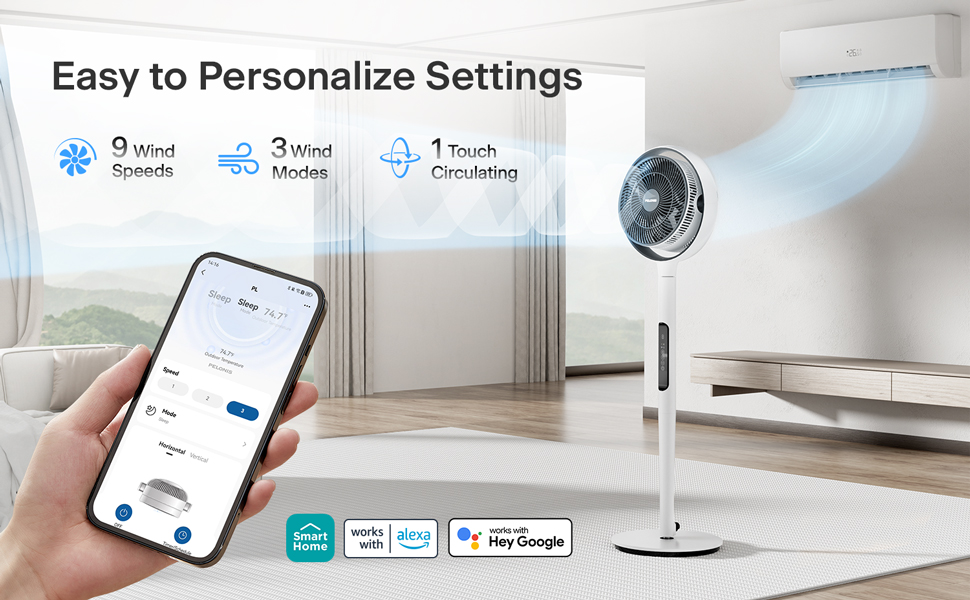 • 9-Speed + Custom Modes – Features 3 modes (Normal/Nature/Sleep), 9 wind speeds, 1-touch circulation mode, and a 9-hour timer for personalized cooling.